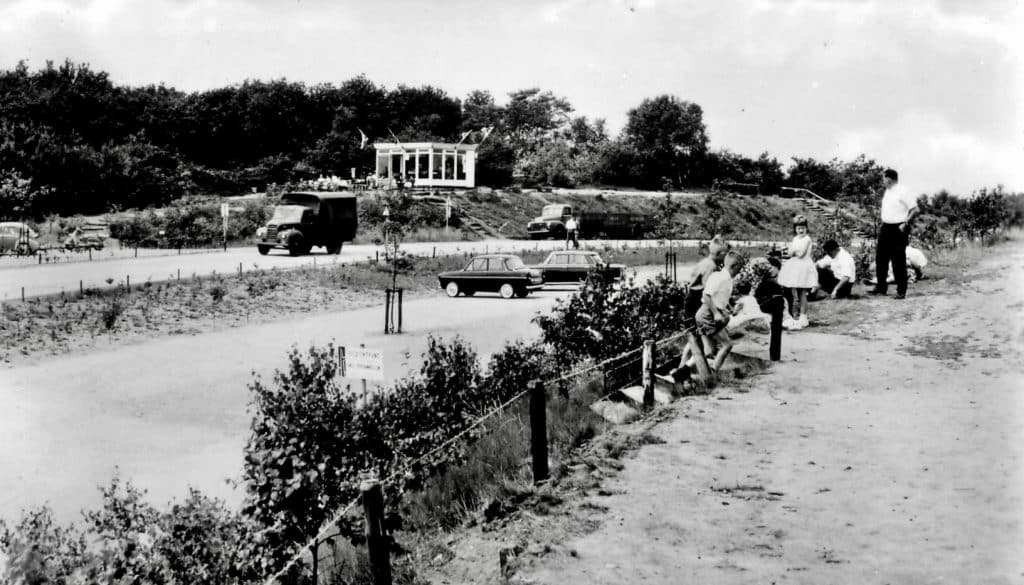 Restaurant ’t Hoogt In 1952 werd door de aanleg van de Van Weerden Poelmanweg het terrein van het Soester Hoogt gescheiden van dat van De Stompert. Deze nieuwe weg naar Soest werd in juni 1953 geopend. Aan de kant van Utrecht was het uitzicht al ontnomen door de hoger geworden bomen, maar nog eind jaren vijftig kon men vanaf het uitkijkpunt op het Soester Hoogt (waar het paviljoentje had gestaan) de Soester Duinen zien en de fabriekspijpen van het pompstation van de waterleiding en die van de fabrieken aan de De Beaufortlaan. Aan de voet van deze hoogte begon Arie Baars een kleine horeca-gelegenheid met aan de overkant van de weg een kiosk. Omdat men vanaf dit punt nog wel een stuk van de vliegbasis kon zien met startende en landende vliegtuigen, trok de eettent op mooie dagen tamelijk veel publiek aan. Enie Tammer nam het bedrijfje van Baars over. Door de jaren heen groeide deze ’tent’ uit tot een grotere eetgelegenheid, die tegenwoordig Restaurant ’t Hoogt heet.