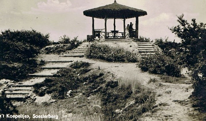 Uitkijkpunt als paviljoen Waarschijnlijk in deze tijd werd op een van de hoogste punten, even ten oosten van de weg naar Soest (Banningstraat) een achthoekig paviljoentje gebouwd dat met een cirkelvormig dak werd afgedekt. Hier vandaan kon men, gezeten op banken, bij helder weer veel van het oostelijk deel van de provincie Utrecht overzien met de Domtoren, De Pyramide van Austerlitz, de Lange Jan in Amersfoort en soms zelfs zeilboten op het IJsselmeer. Notulen Gemeente Soest 1940. <De houtvester van Staatsboschbeheer deelt mede dat de bouw van de uitzichttoren op de Stompert vrijwel gereed is en geeft in overweging aan den aannemer f 120,- uit te betalen.>
